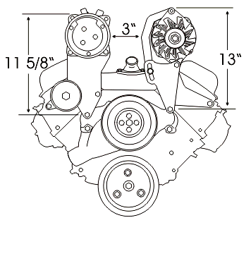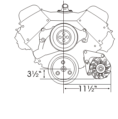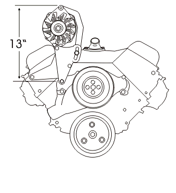 This bracket is designed to use the new smaller G.M. CS130 alternator with the mounting ear in the 2 o' clock position as shown in the important info. page of this web site. It requires less space than the standard G.M. alternator used on our 208L bracket.