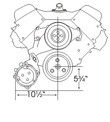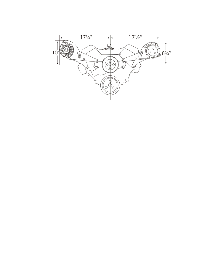 A very strong bracket system for Big Blocks. Bolts to the heads and top water pump locations. A.C. bracket is complete with idler assembly. Will clear most valve covers.