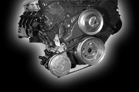 Engineered for low hood applications. Works great on any vehicle with a wide engine compartment - Trucks, 50-60's cars, etc. Bolts to the heads and water pump.