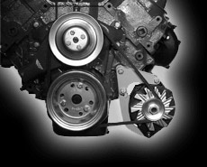 Bolts to fuel pump mounting flange. May be driven off crank and fan pulleys or crank pulley ONLY. REQUIRES USE OF A REMOTE FUEL PUMP. Check our dimension requirements before ordering.